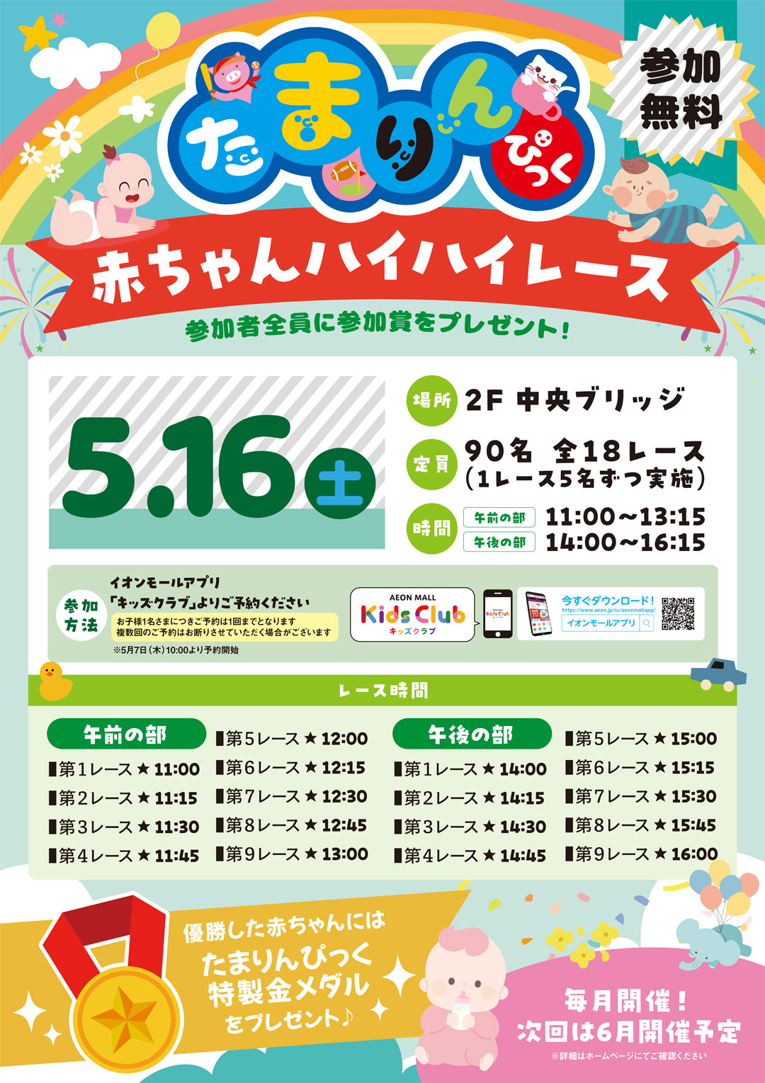 参加方法:イオンモールアプリ「キッズクラブ」よりご予約ください